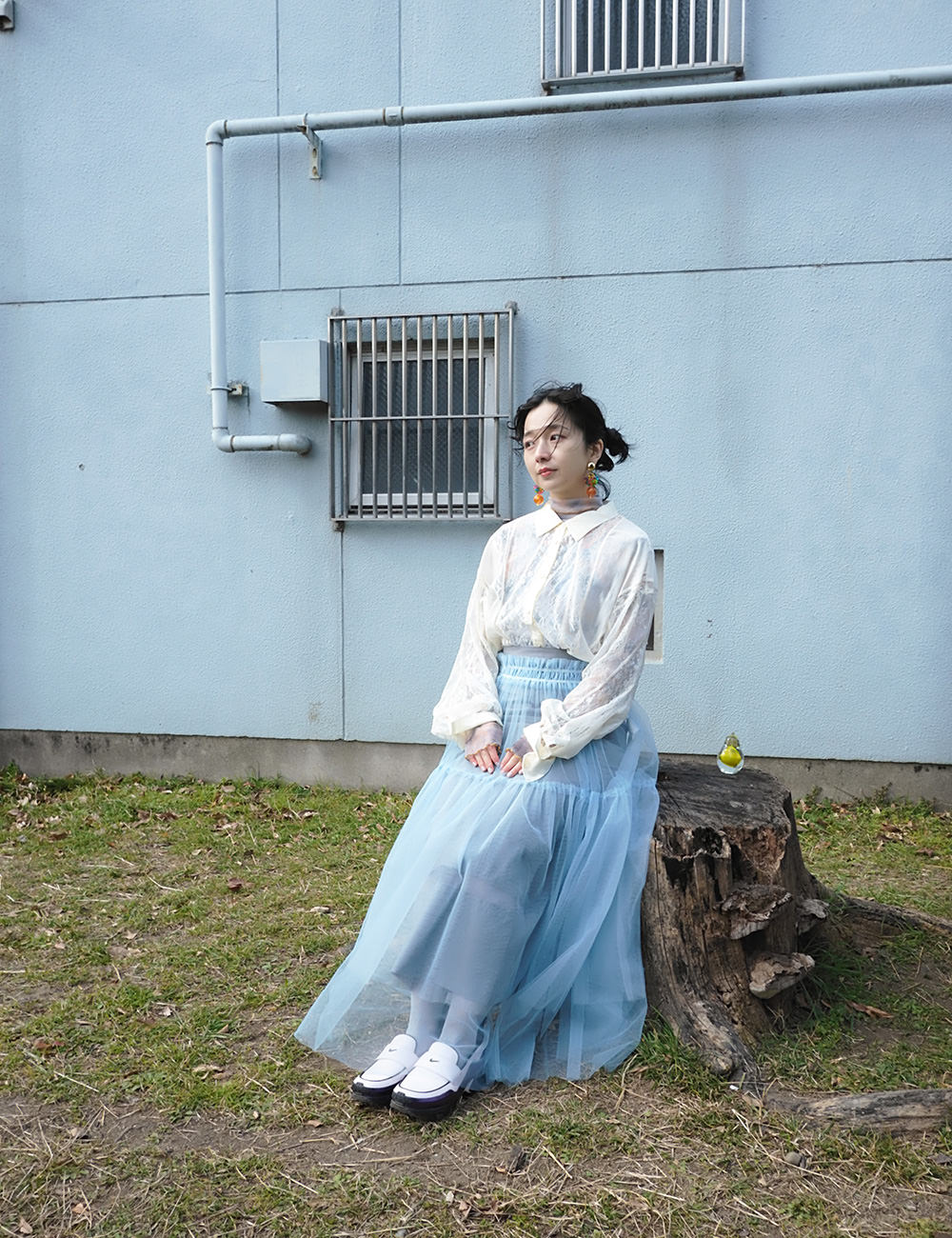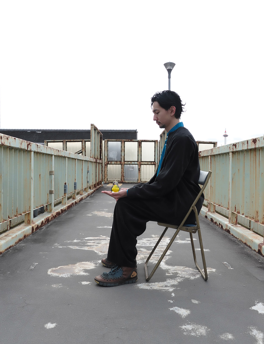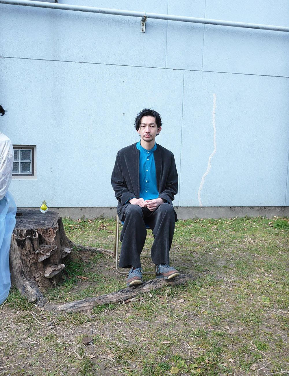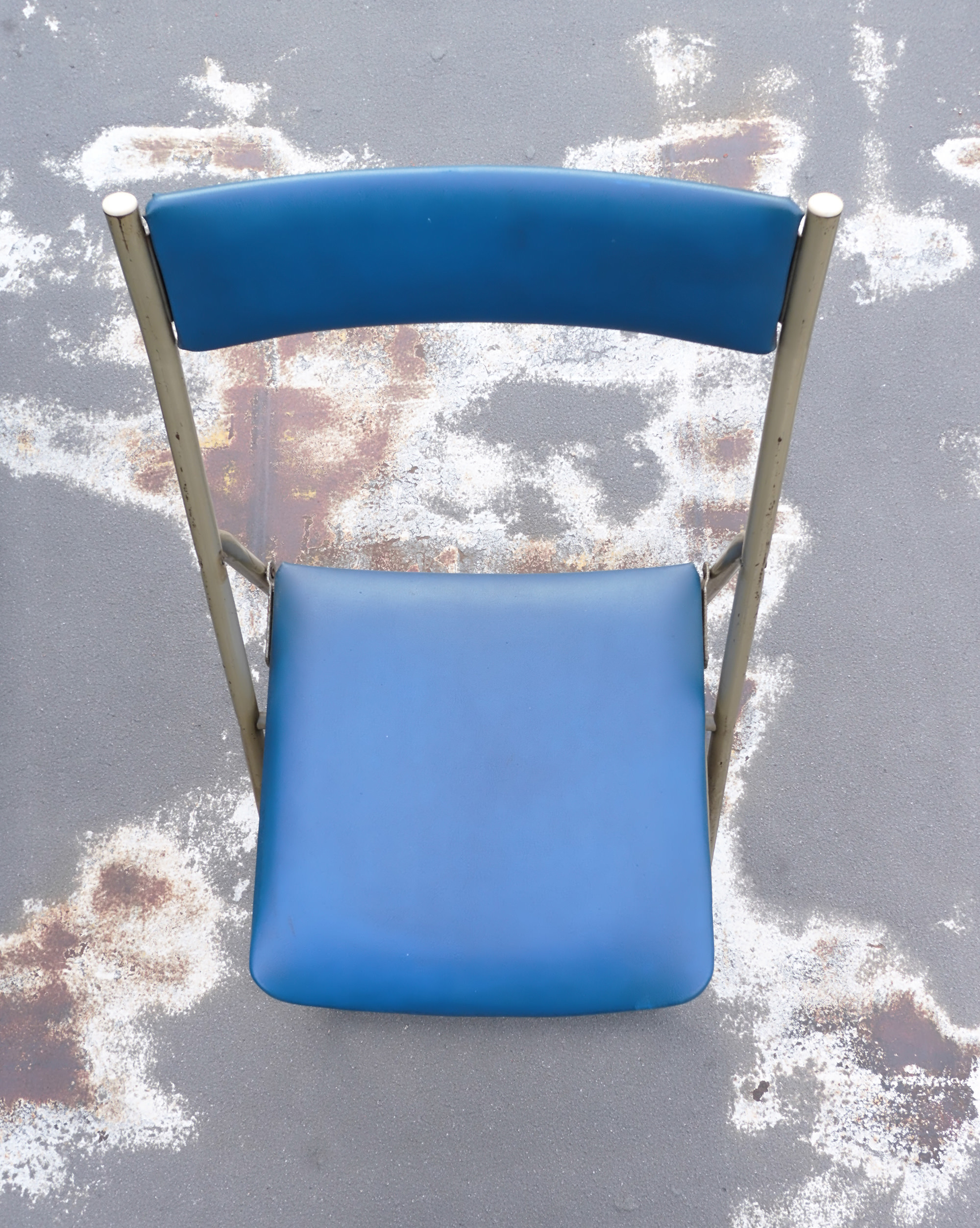黄色い置物と青い椅子