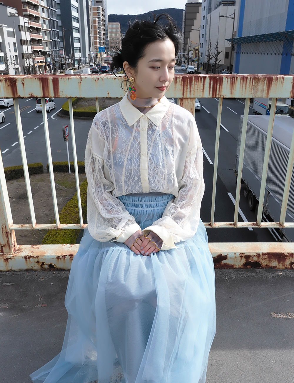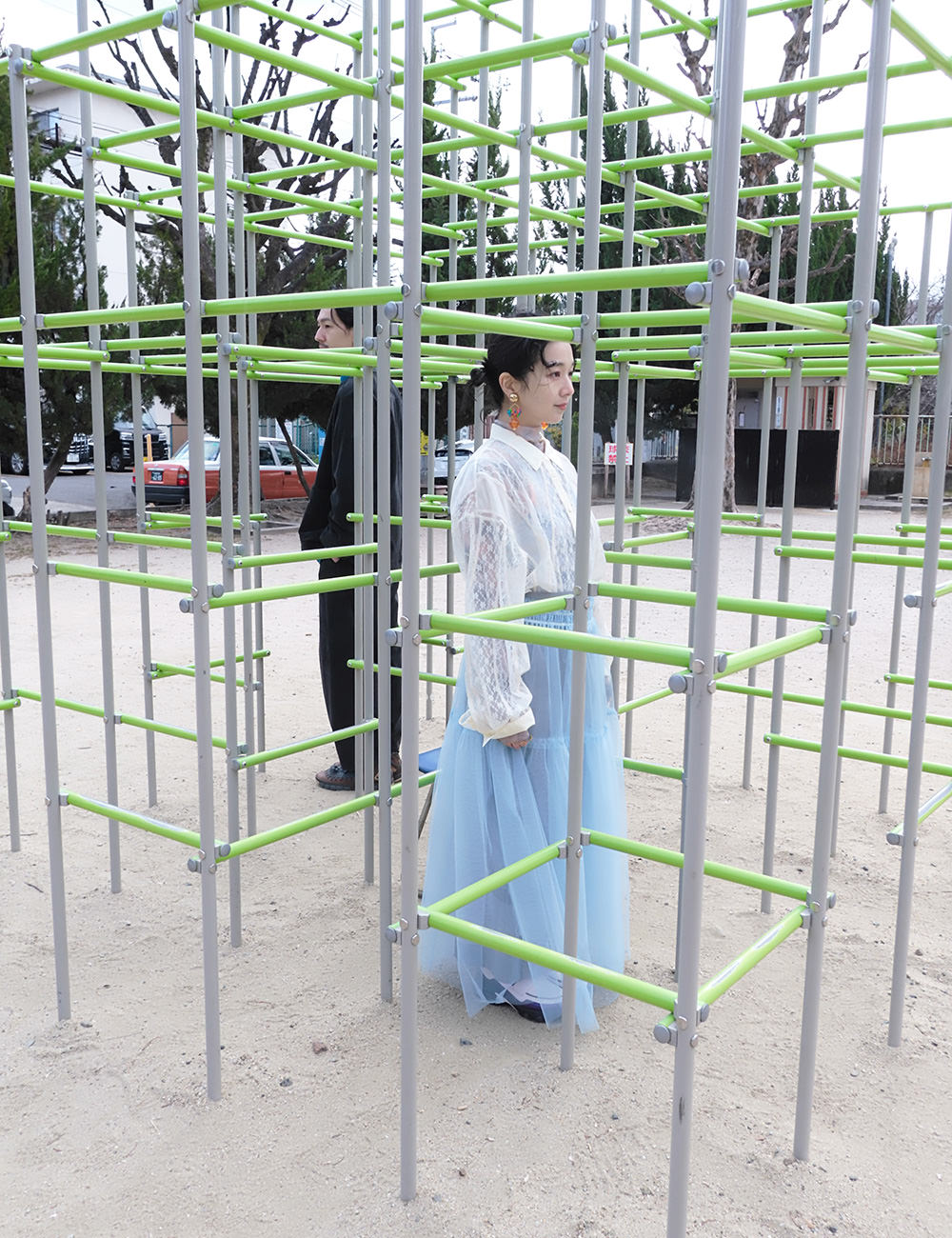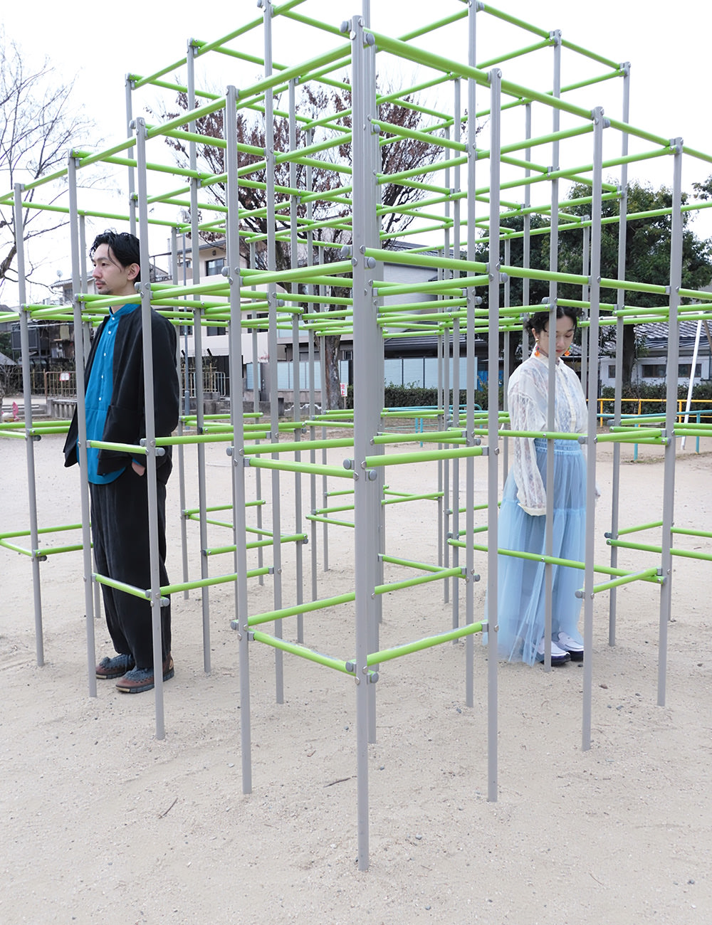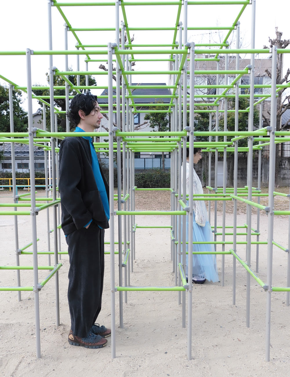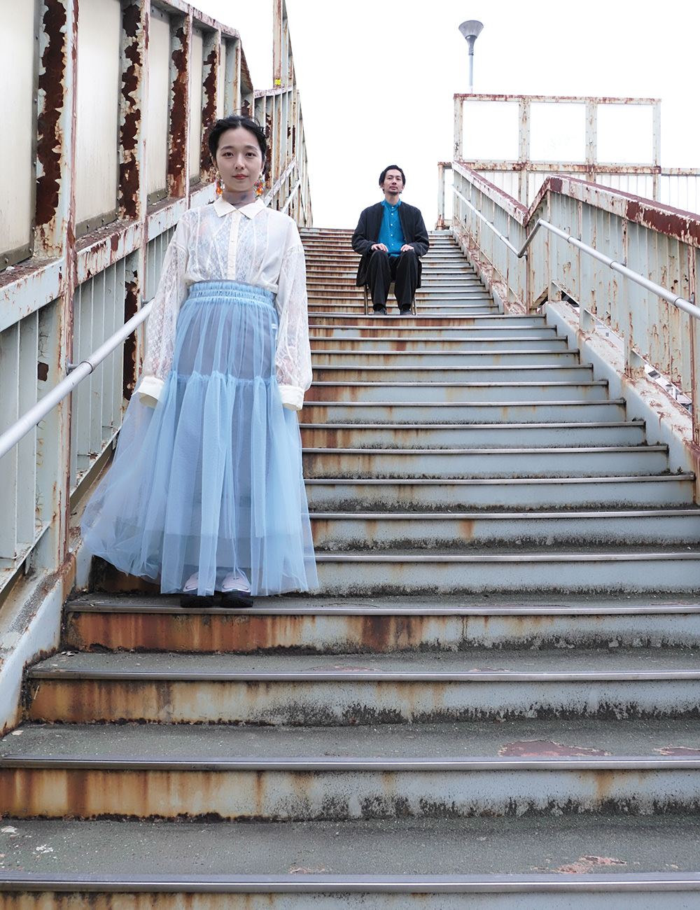 黄色い置物と青い椅子